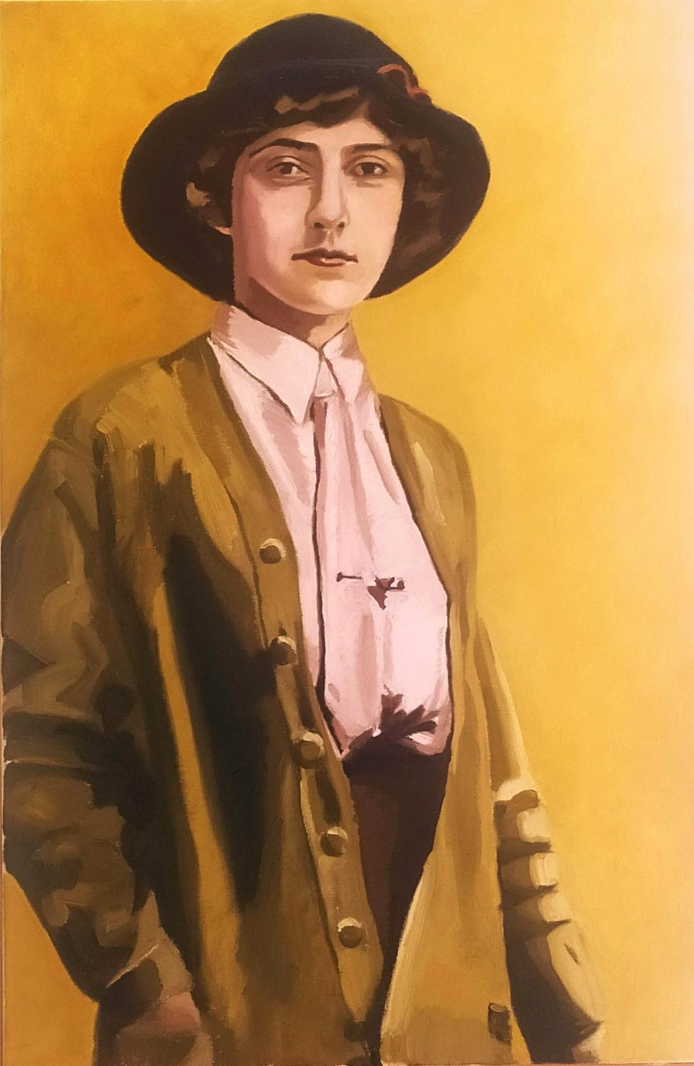 Portrait of Agatha Christie as a young woman, painted from an archival photograph.