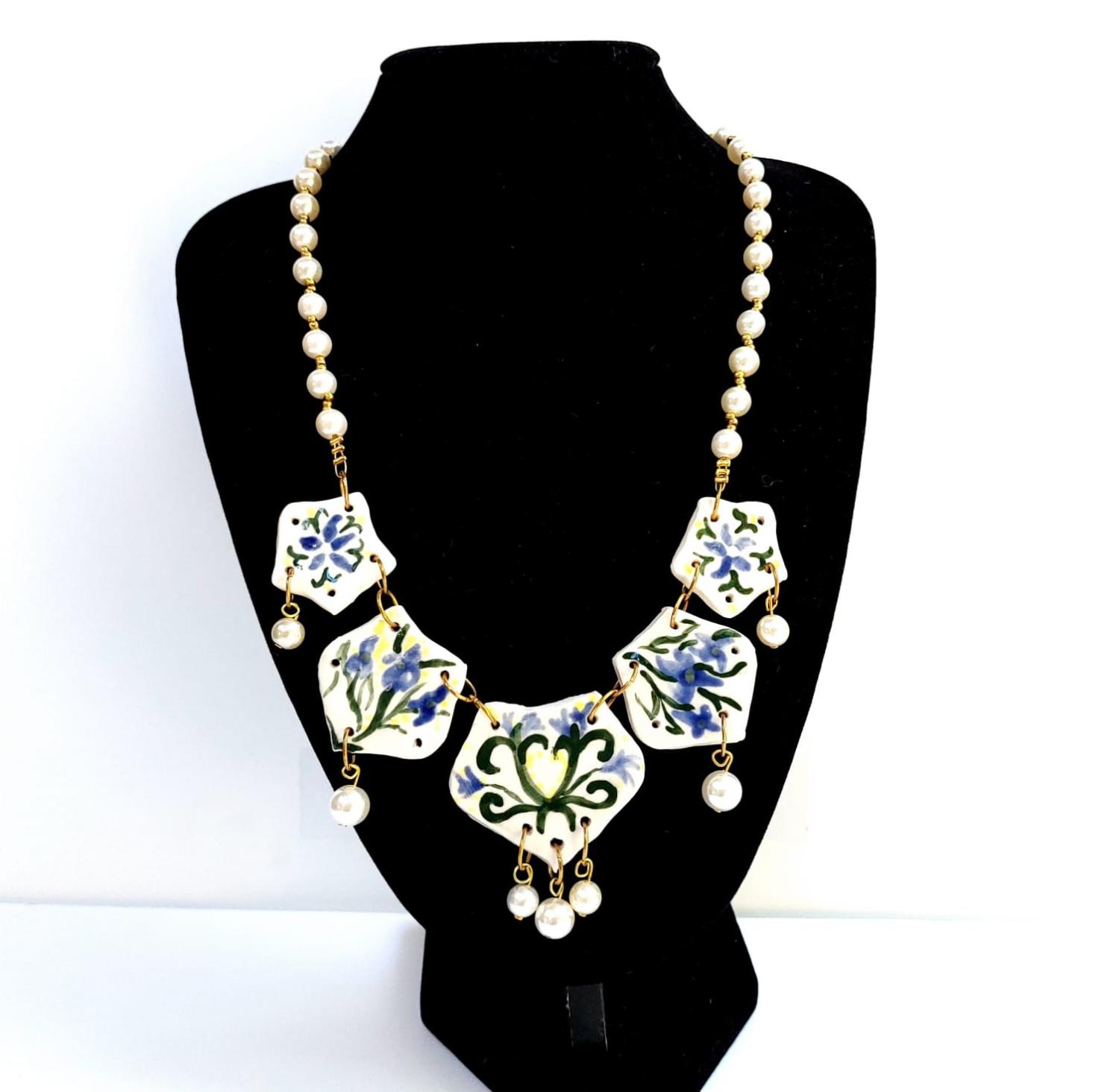 Original necklace made from porcelain and beads