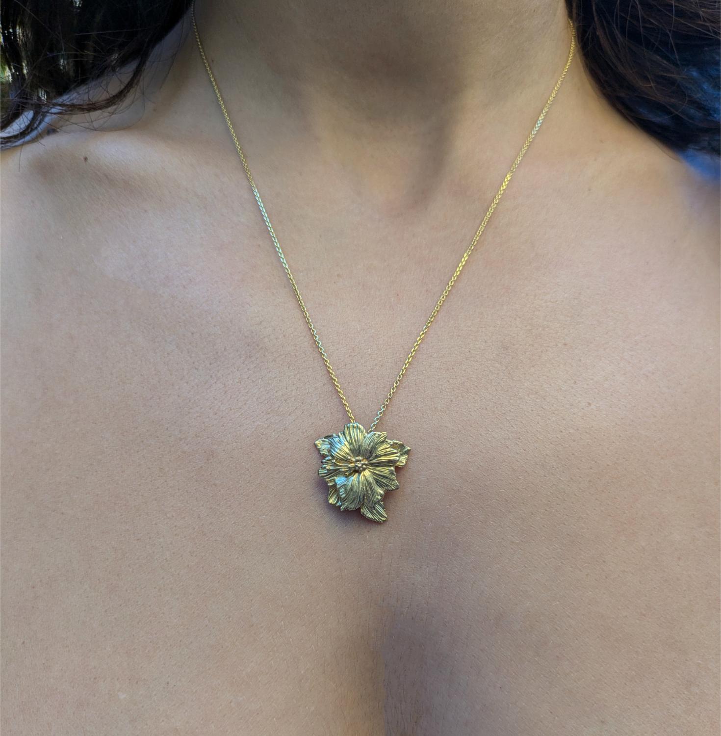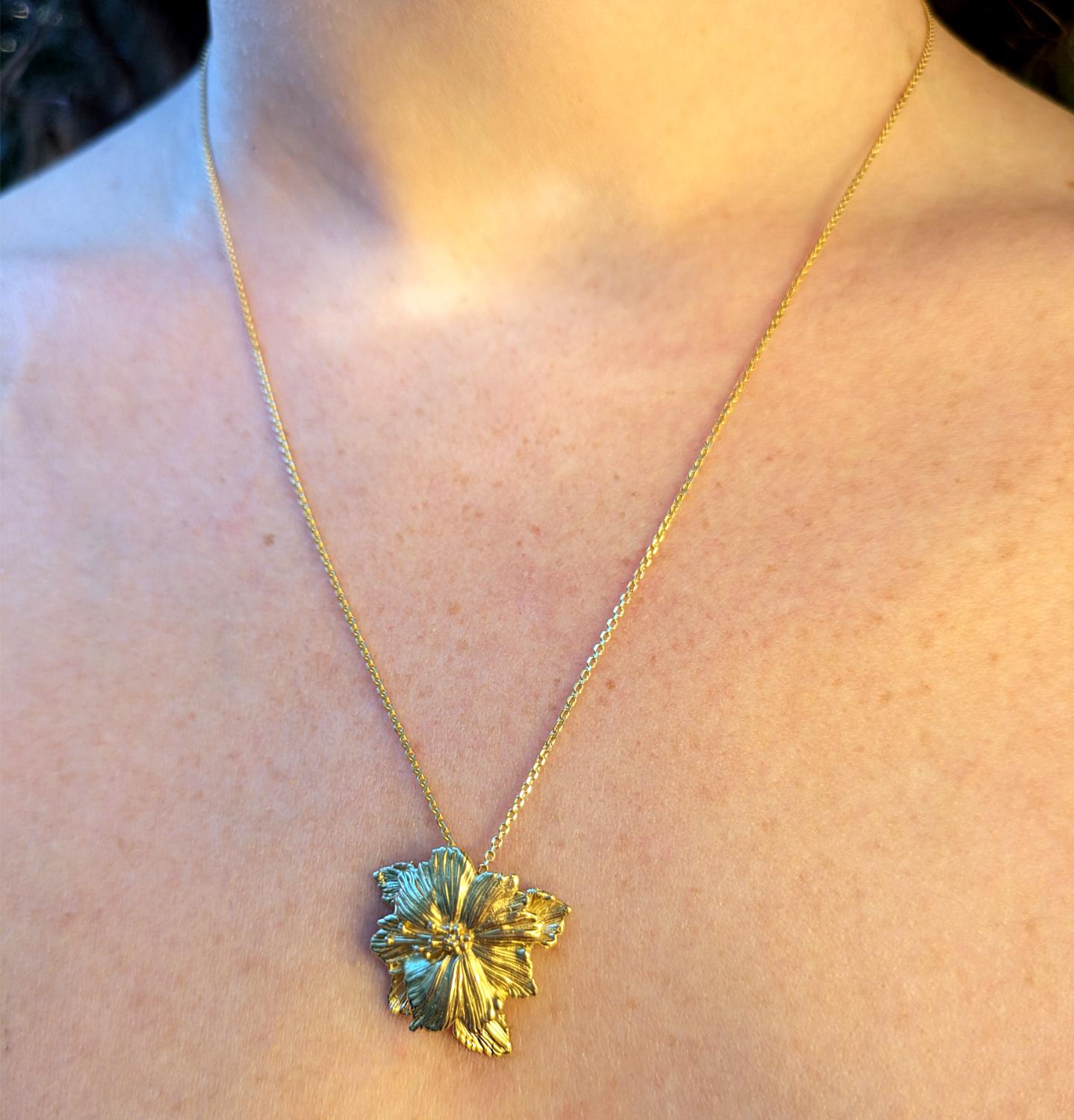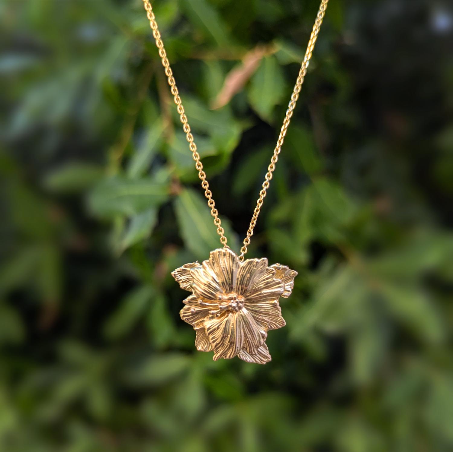 Botanically inspired handcrafted gold pendant from the Hibiscus Flower Collection. Perfect for everyday wear and special occasions.
