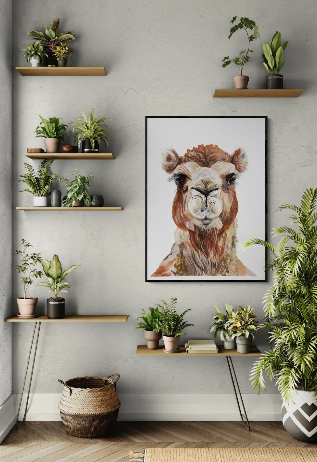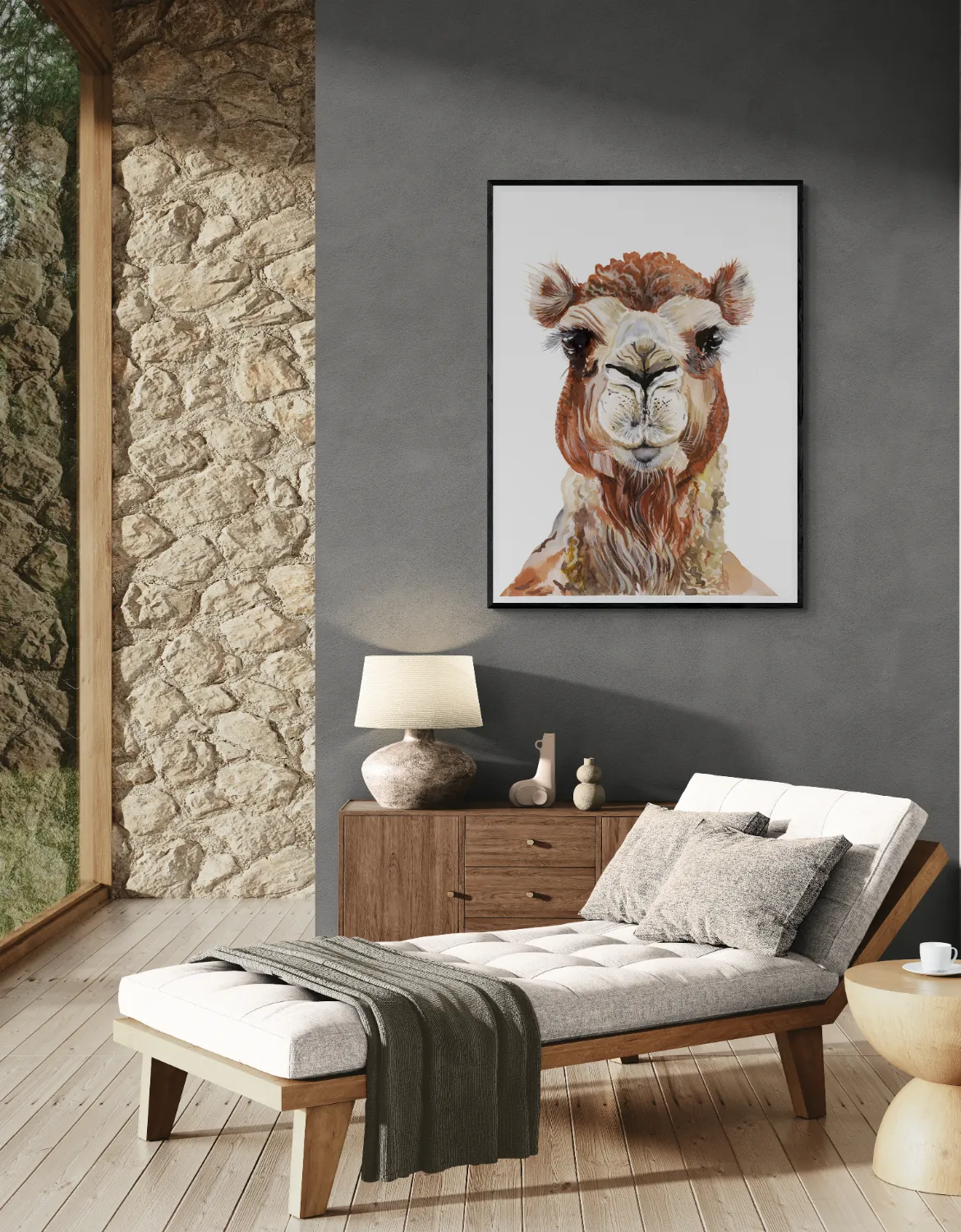 Whether printed large to make a powerful statement in your living room, dining area, or executive space, or kept smaller for intimate spaces like hallways or children’s rooms, this camel becomes an unforgettable focal point.