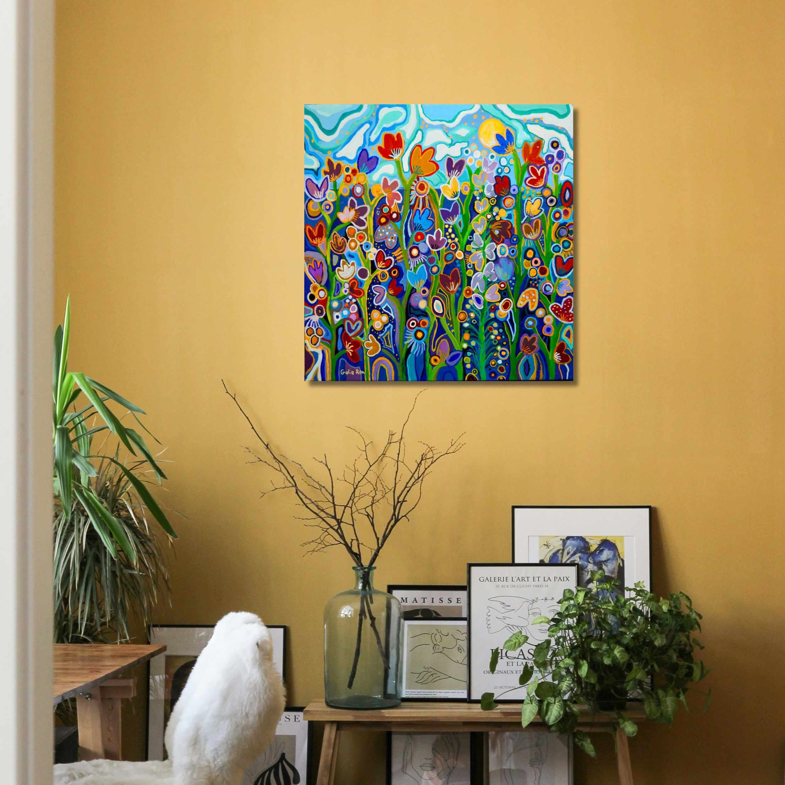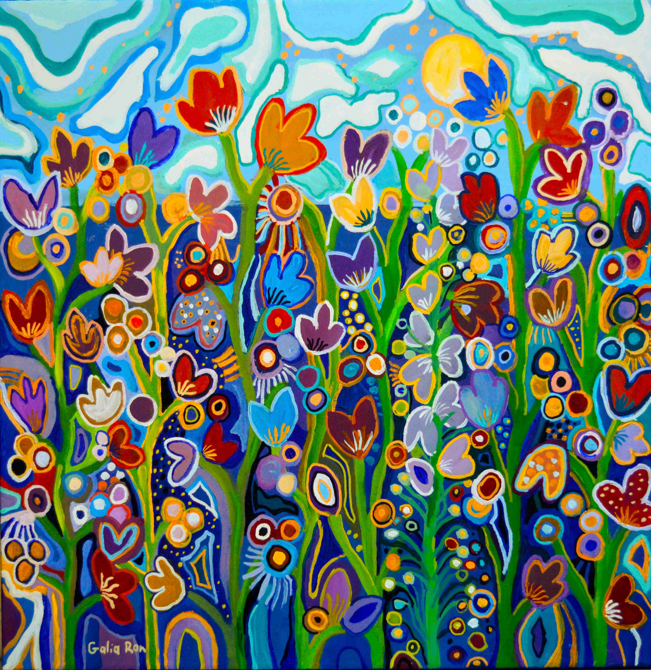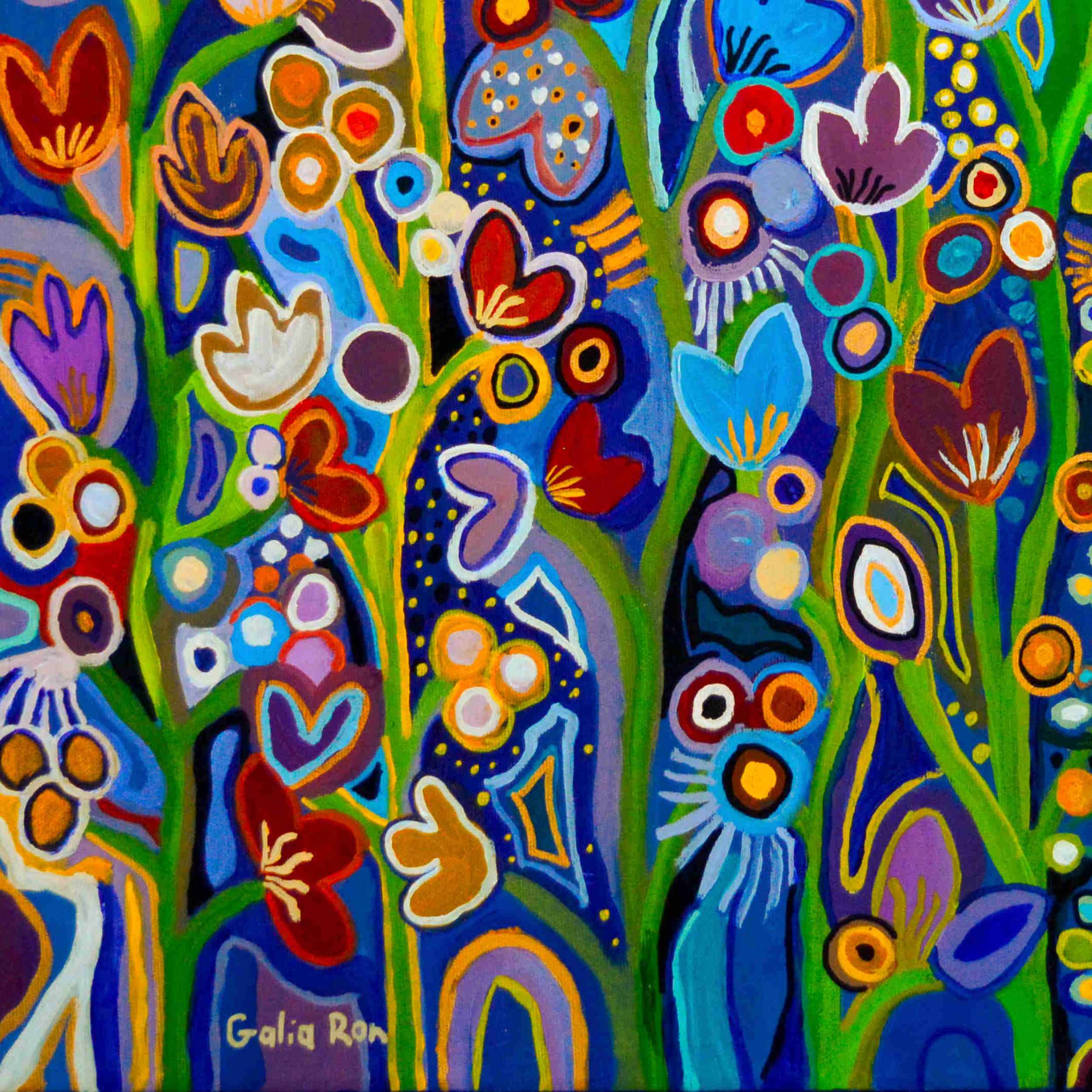 “My Garden in Bloom” is a very colorful and lively painting that depicts the spring season, when nature is at its peak and in full beauty.