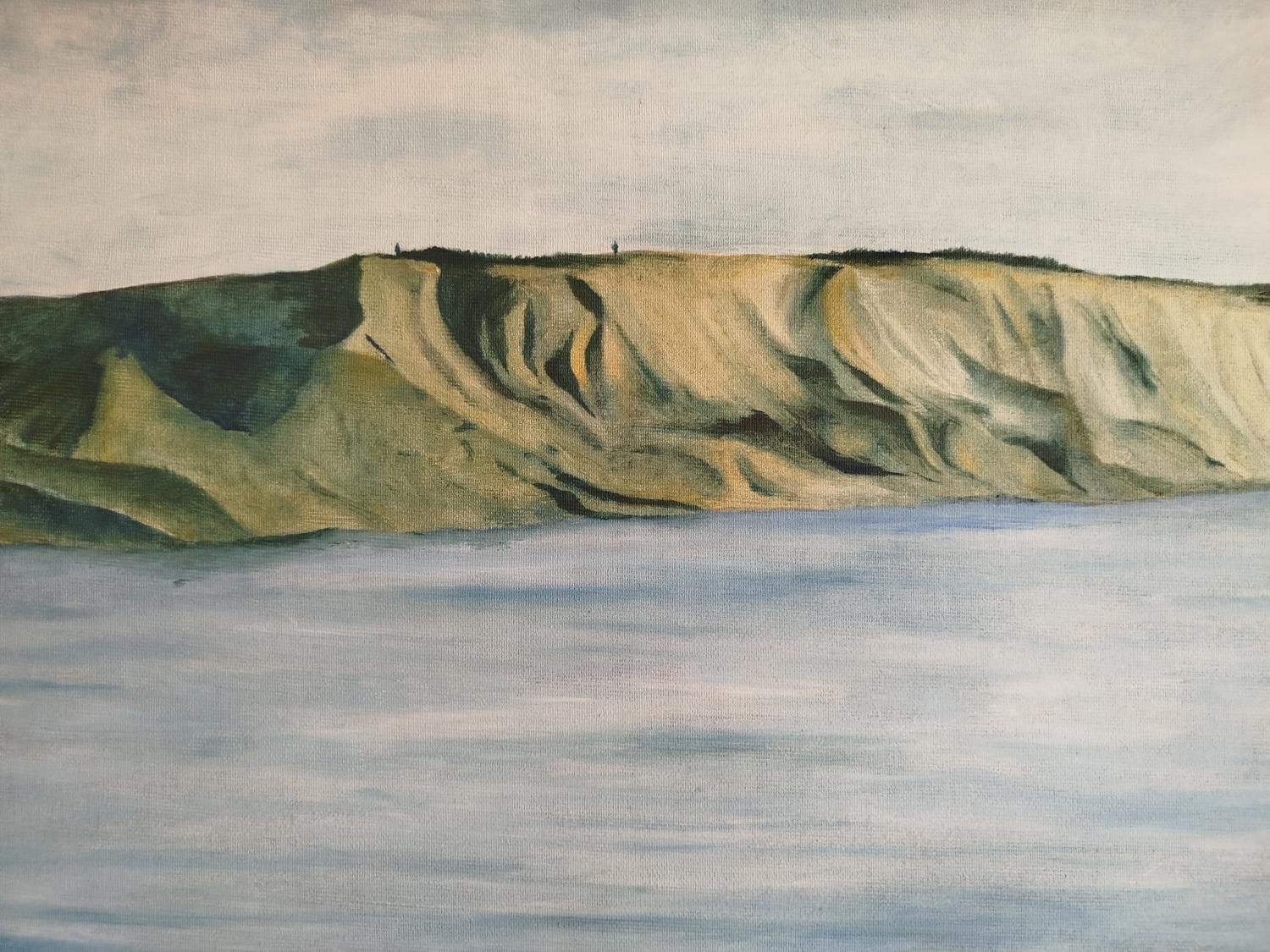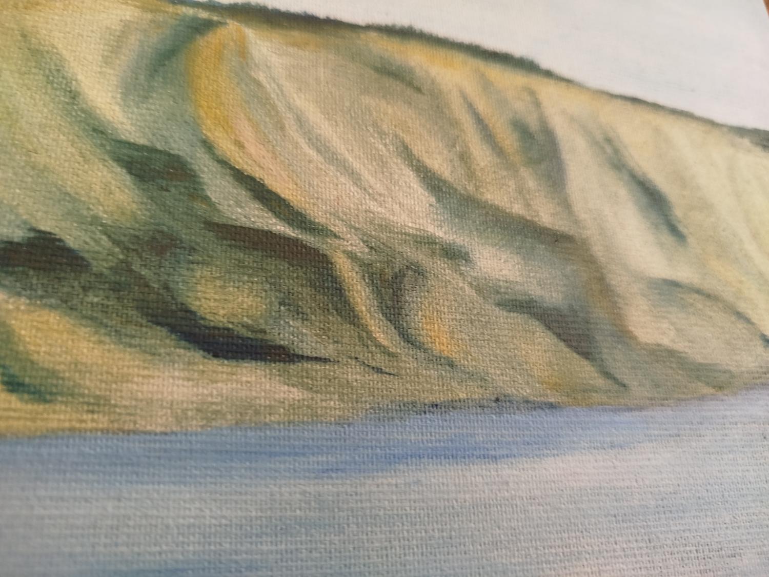 A stunning realist oil painting that invites the viewer to experience the peace and tranquility of the Golan Heights. The soft, golden light of the setting sun bathes the landscape in a warm glow, creating a sense of calm and serenity. The careful brushstrokes and rich colors bring the scene to life, evoking a deep emotional response.