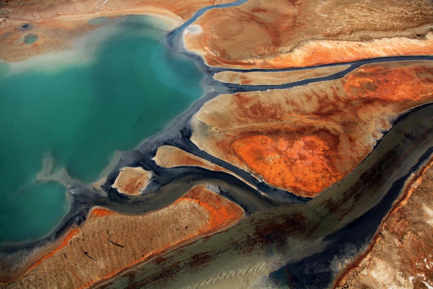 Salty colorful water at the dead sea