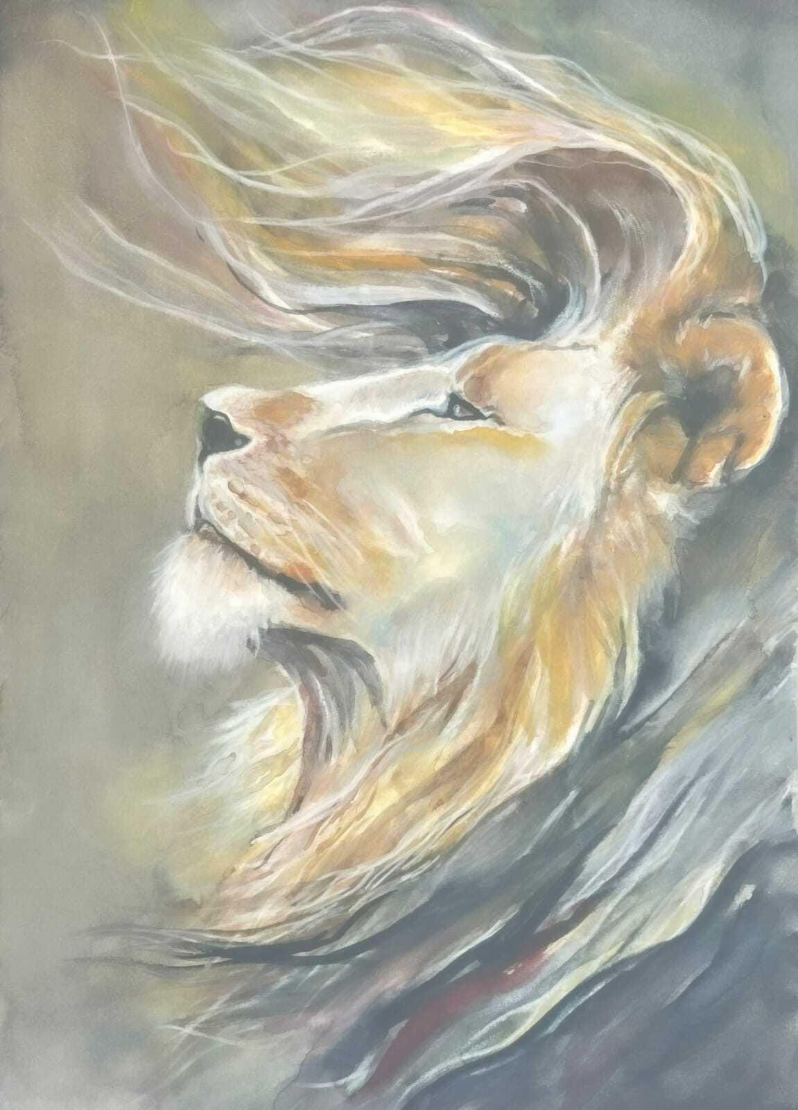 Born in a time of turmoil, at the time of Israel-Iran war. This lion stands as a timeless symbol of strength. His mane dances with the wind, his gaze is steady and unyielding. Every brushstroke breathes courage, resilience, and the quiet certainty of triumph